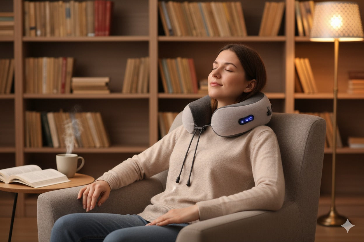Su tecnología de masaje por vibración y calor relaja los músculos, mejora la circulación y reduce la tensión acumulada.